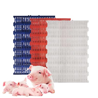 This polypropylene piglet manure drainage board has a high load-bearing capacity of 200-250kg for a single section. Single pole and double pole models for different purposes, 500~ 600kg high load-bearing capacity. It has good anti-slip properties, good toughness, anti-aging, corrosion resistance, no deformation, and long service life. The surface is smooth and burr-free, without hurting the pig’s feet and teats. It provides hygienic and healthy superior birthing conditions for sows, sheep, goats, and other animals so that they can have a good growing environment. A leakage board can realize effective manure leakage and is easy to clean and install. Thickened material, strong pressure resistance, and not easy to be scraped off. Equipped with a side self-locking device, easy to install and save time and effort. Generally, a plastic manure leaking board is used with sow farrowing bed or nursery bed. According to customers’ usage habits, different styles of manure leaking board are suitable for different pig boxes. Different colors and sizes can be customized and produced according to customers’ requirements.