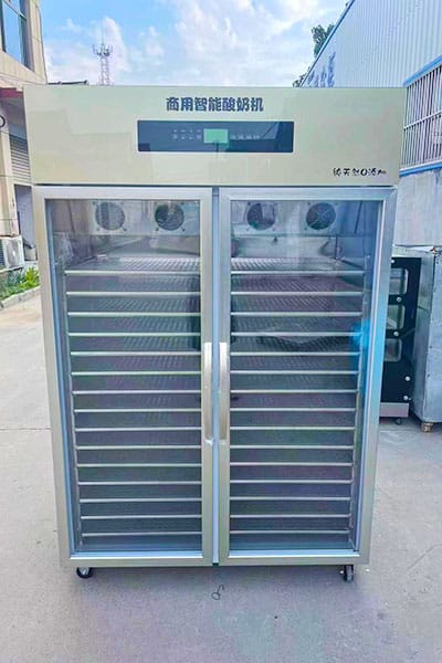 The rear of the machine is equipped with an air duct, which allows the fermentation and refrigeration temperatures to be more even. High-quality layer design, with better bearing capacity. Using a microcomputer intelligent temperature control can set the fermentation temperature, time, and refrigeration temperature. It has the functions of fermentation, condensation, refrigeration, and sterilization. After fermentation, it can automatically enter the refrigeration function. In addition to fermented yogurt, yogurt, natto, rice wine, and so on can also be made. This commercial yogurt machine is very suitable for small dairy cows or sheep milk farms to use mobile milking machines, milk through pasteurization machine sterilization, and then make yogurt and sales use, also very suitable for dessert shops and fresh milk shops to make yogurt and yogurt fruit dessert use.
