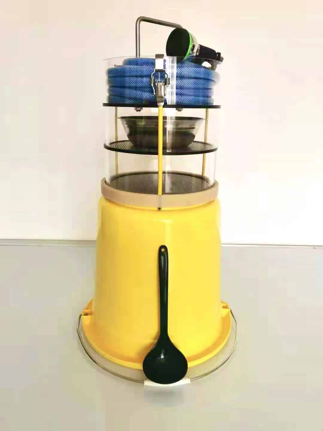 (2) wash the feces in the sieve (shower state) (slow down and fast lift out and clean the water).
