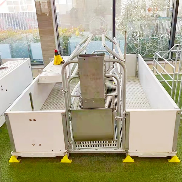 - The mainframe is welded by an inch pipe, the whole hot-dip zinc process, adjustable pig position width, equipped with piglet pressure bar, to avoid pig lying down pressure piglet.