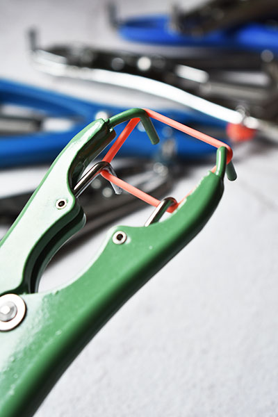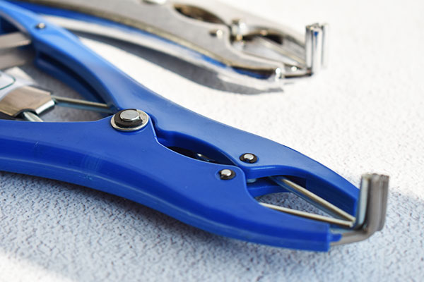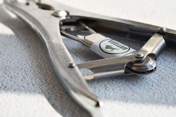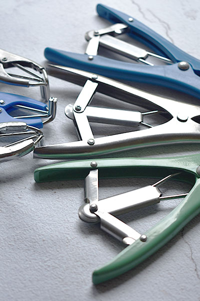 Sheep tail-cutting pliers are specialized veterinary tools used in livestock management to safely and efficiently perform tail docking in lambs. The pliers are designed to clamp and cut the tail with precision, helping to reduce the risk of infections, improve hygiene, and prevent flystrike. Their ergonomic design ensures ease of use and minimizes stress on both the animal and the handler. This pair of tail-cutters is produced in various materials and colors to meet the needs of different customers.